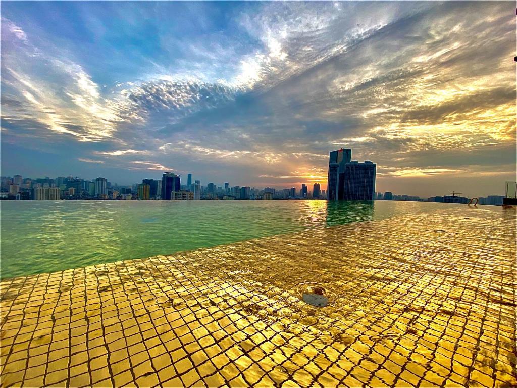 머무는 동안 루프탑에 있는 풀 24K 골드 타일 인피니티 풀에서 고급스러운 수영 경험을 즐기십시오. 사계절 수영장은 200제곱미터가 넘는 면적에 Giang Vo 호수를 내려다 볼 수 있습니다.