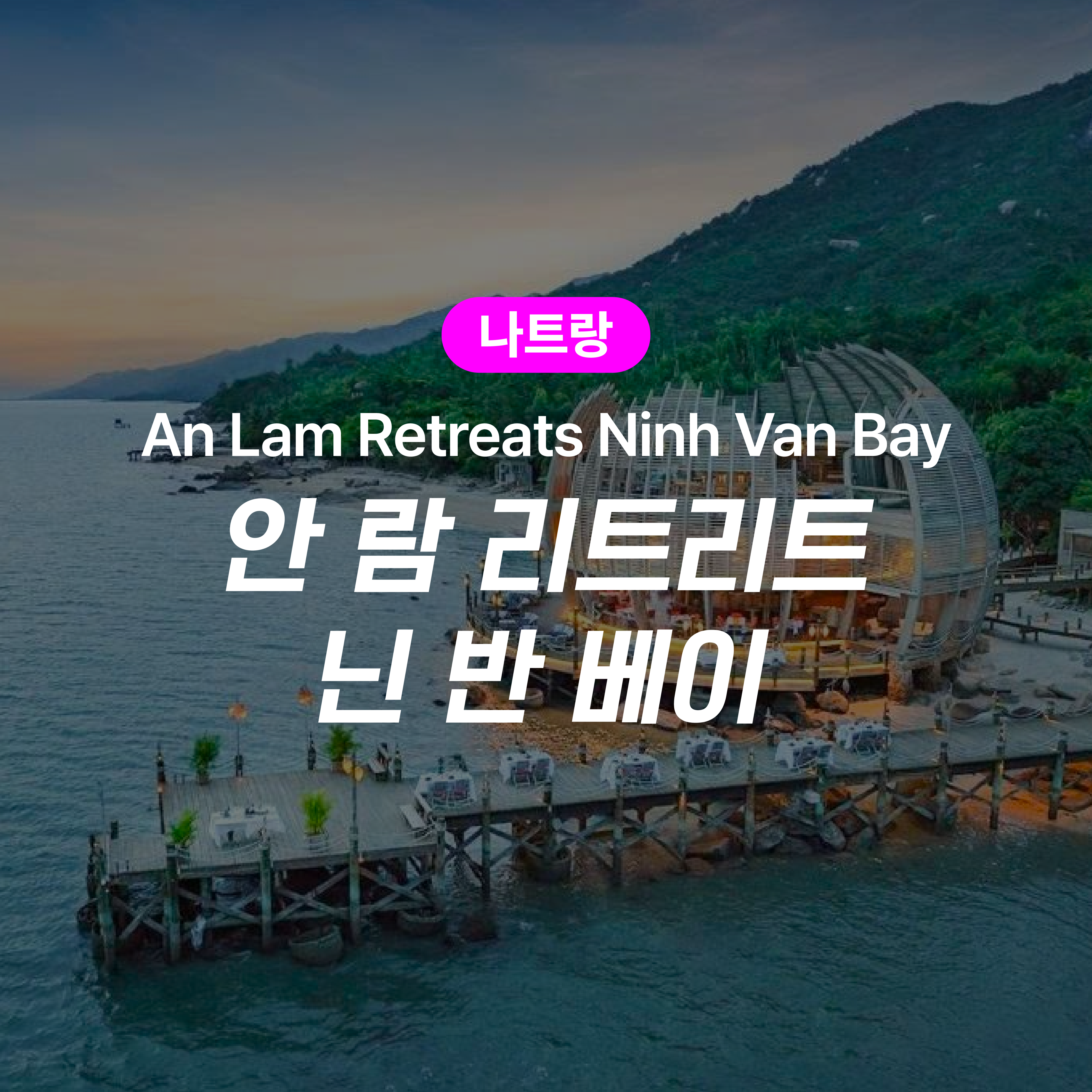 안 람 리트리트 닌 반 베이는 나트랑 베트남에 위치한 5.0성급 호텔입니다. 이 호텔은 최고의 서비스와 편의 시설로 여러분을 맞이합니다. 도심에서 약 20km 떨어져 있어 조용하고 평화로운 환경에서 휴식을 취할 수 있습니다. 공항까지의 이동 시간은 약 60분이 소요되며, 여러분이 편안하게 이동할 수 있도록 도움을 드립니다.