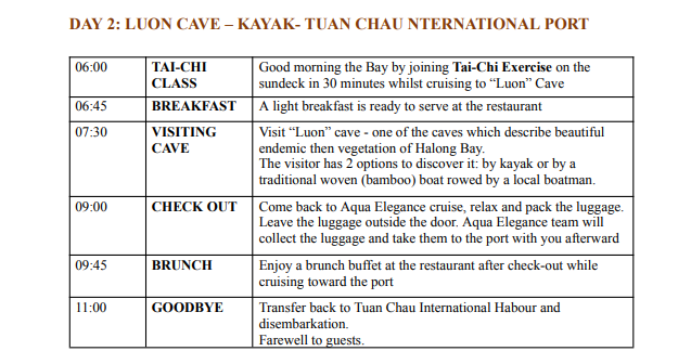 👉하롱베이 아쿠아 엘레강스 크루즈 1박2일 일정