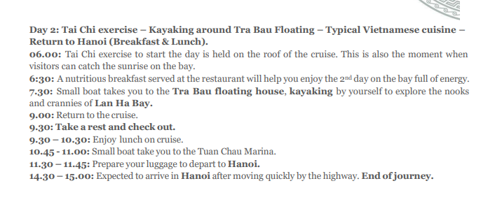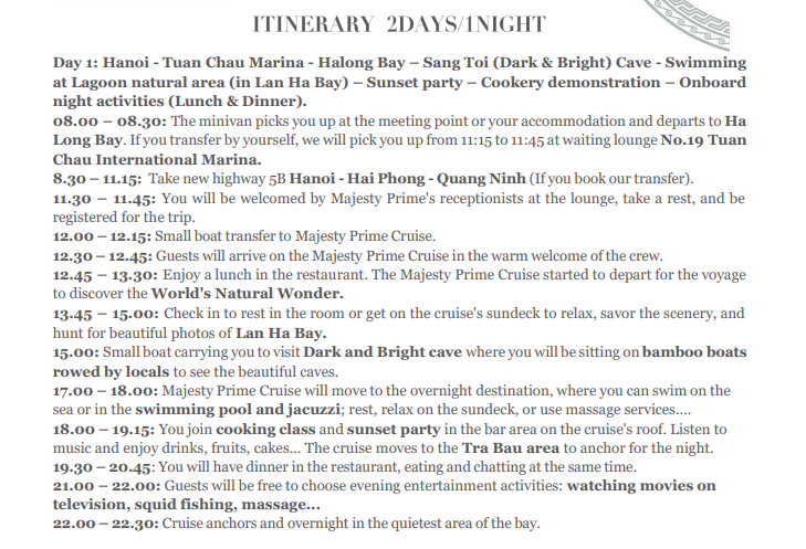 👉하롱베이 제네시스 리갈 크루즈 1박2일 일정