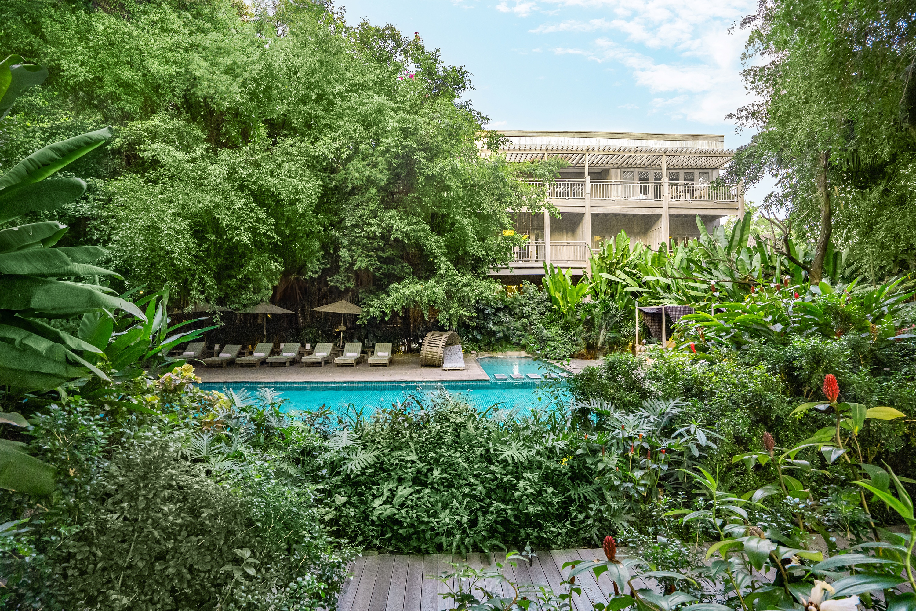 1. 가든 뷰 스위트 (Garden View Suite): 64m² / 가든 뷰 2. 리버 뷰 스위트 (River View Suite): 64m² / 리버 뷰 3. 리버 뷰 이그제큐티브 스위트 (River View Executive Suite): 85m² / 리버 뷰 4. 가든 풀 스위트 (Garden Pool Suite): 107m² / 가든 뷰 5. 가든 뷰 투베드룸 스위트 (Garden View Two-Bedroom Suite): 121m² / 가든 뷰 6. 가든 풀 빌라 (Garden Pool Villa): 100m² / 가든 뷰 7. 리버 뷰 시그니처 스위트 (River View Signature Suite): 206m² / 리버 뷰 8. 리버프런트 풀 빌라 (Riverfront Pool Villa): 130m² / 리버프런트 9. 가든 투베드룸 풀 빌라 (Garden Two-Bedroom Pool Villa): 174m² / 가든 뷰 10. 리버프런트 투베드룸 풀 빌라 (Riverfront Two-Bedroom Pool Villa): 177m² / 리버프런트 11. 프레지덴셜 스위트 (Presidential Suite): 191m² / 가든 뷰