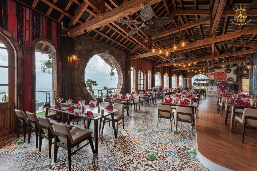 • 스카이 뷰 레스토랑 & 바 (Sky View Restaurant & Bar) - 위치: 호텔 최상층 (루프탑) - 운영 시간: 매일 오전 6시부터 오후 10시까지 - 요리: 베트남 전통 요리와 서양식 요리를 모두 제공합니다. (예: 쌀국수, 피자, 파스타, 호주산 소고기, 해산물 요리, 와인, 리조또, 라비올리, 라자냐, 치킨 폴로 등) • 타반 바 (Ta Van Bar) - 위치: 호텔 내부 - 설명: 고급 라운지 스타일의 바 공간으로, 고객이 체크인 전후로 편안히 음료를 즐기며 쉴 수 있습니다.
