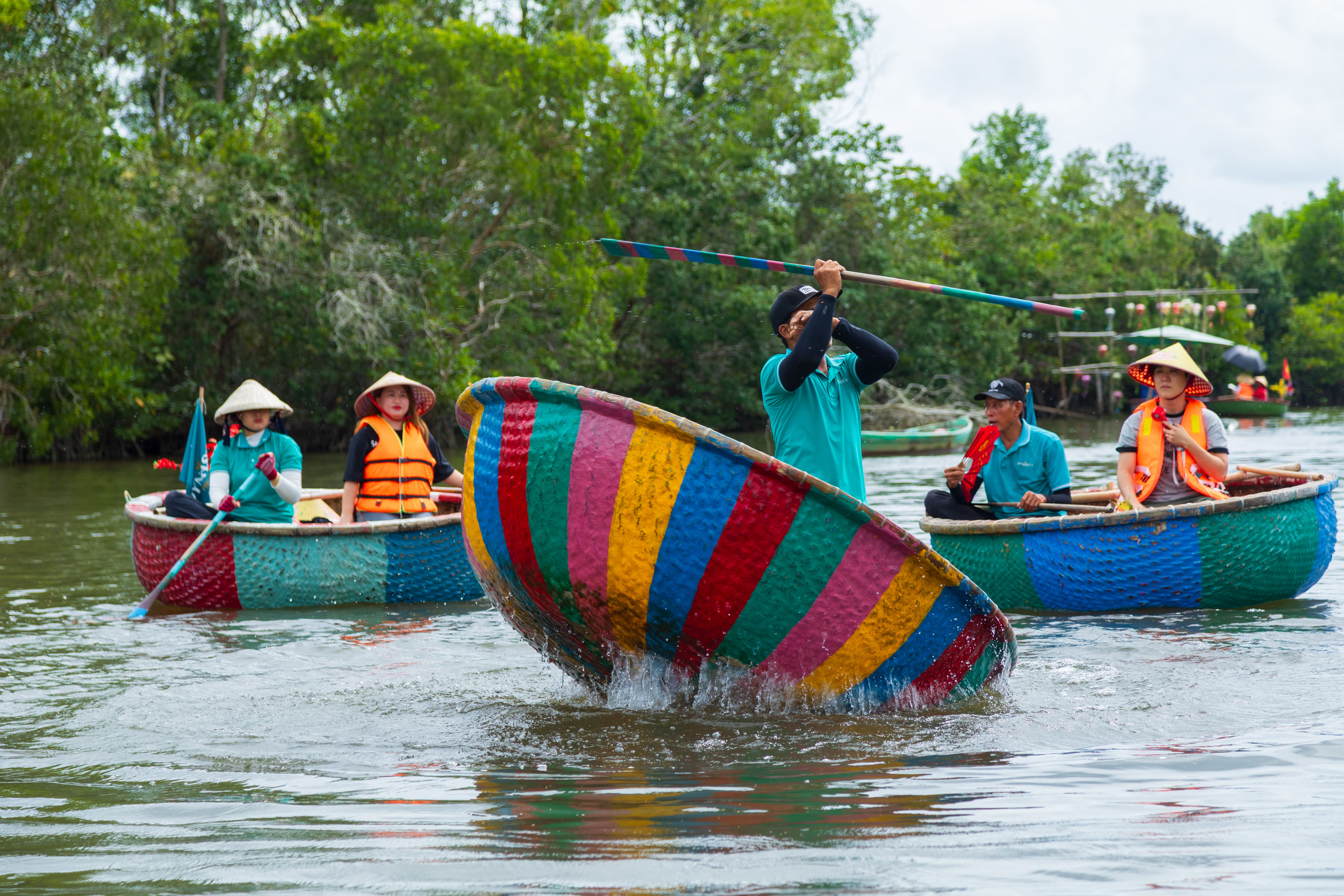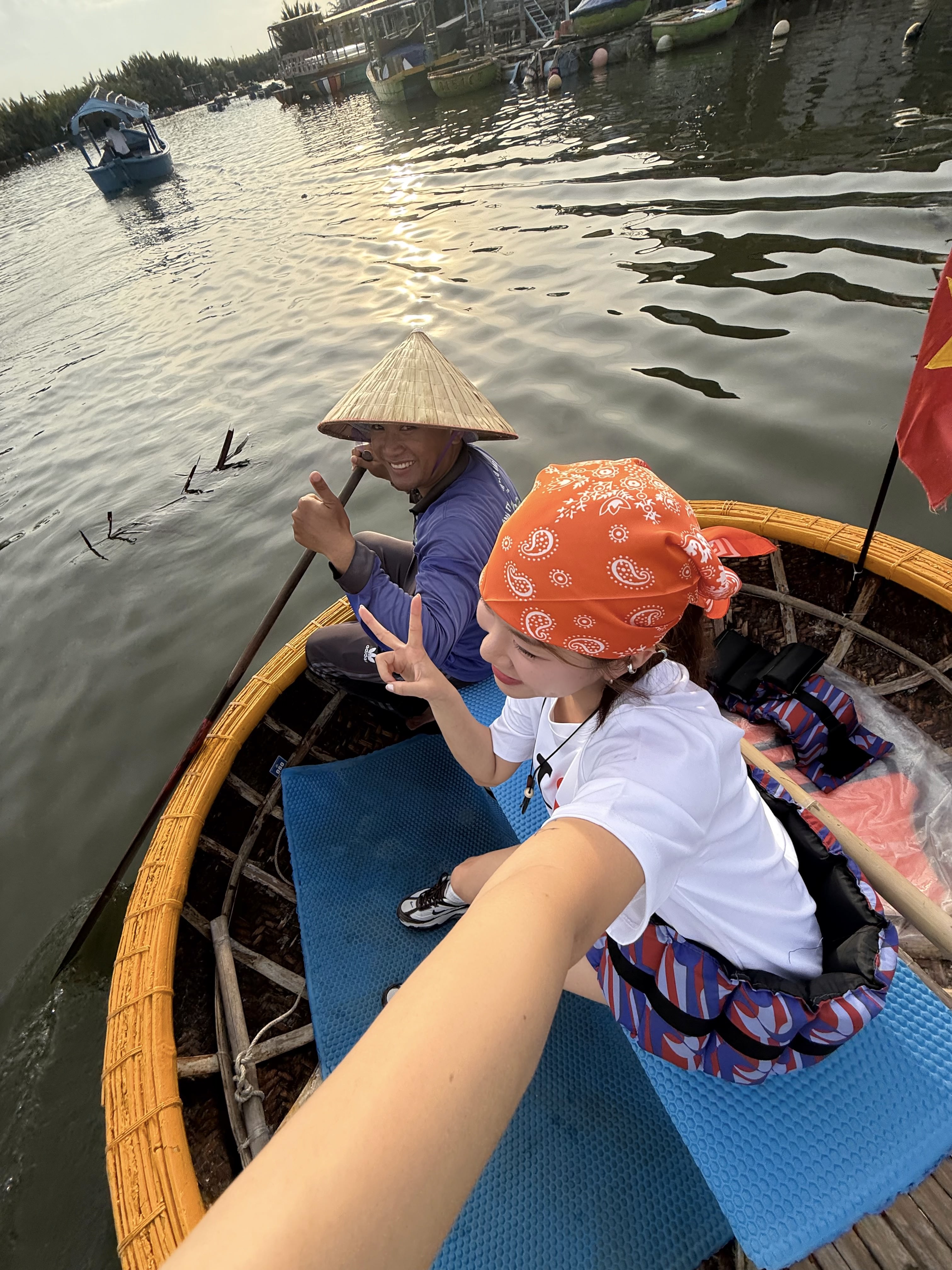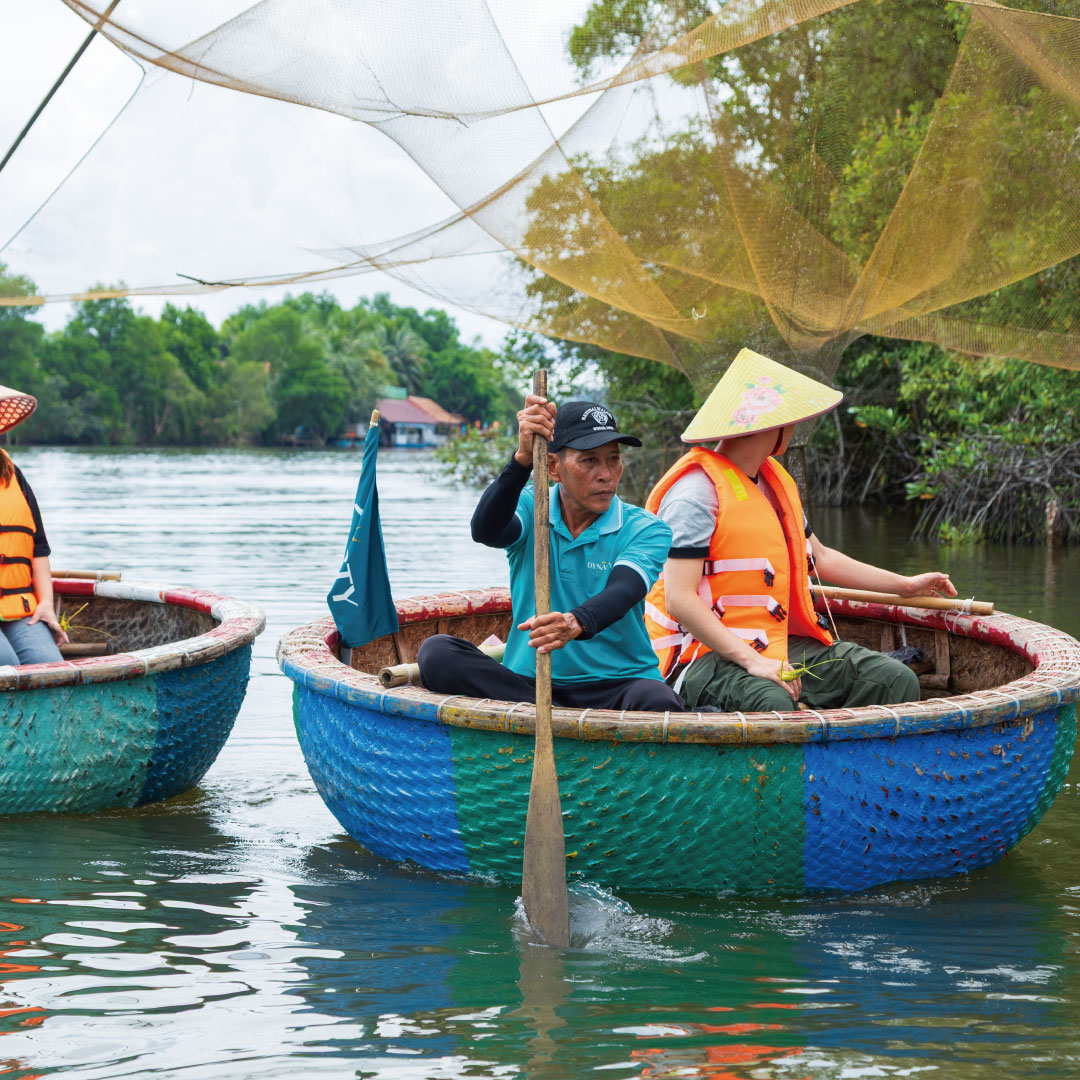 ☑️푸꾸옥 전통 바구니배를 타고 약 40분동안 이동하며 논라 모자를 쓰고 현지 어촌 분위기를 그대로 느낄 수 있는 코스