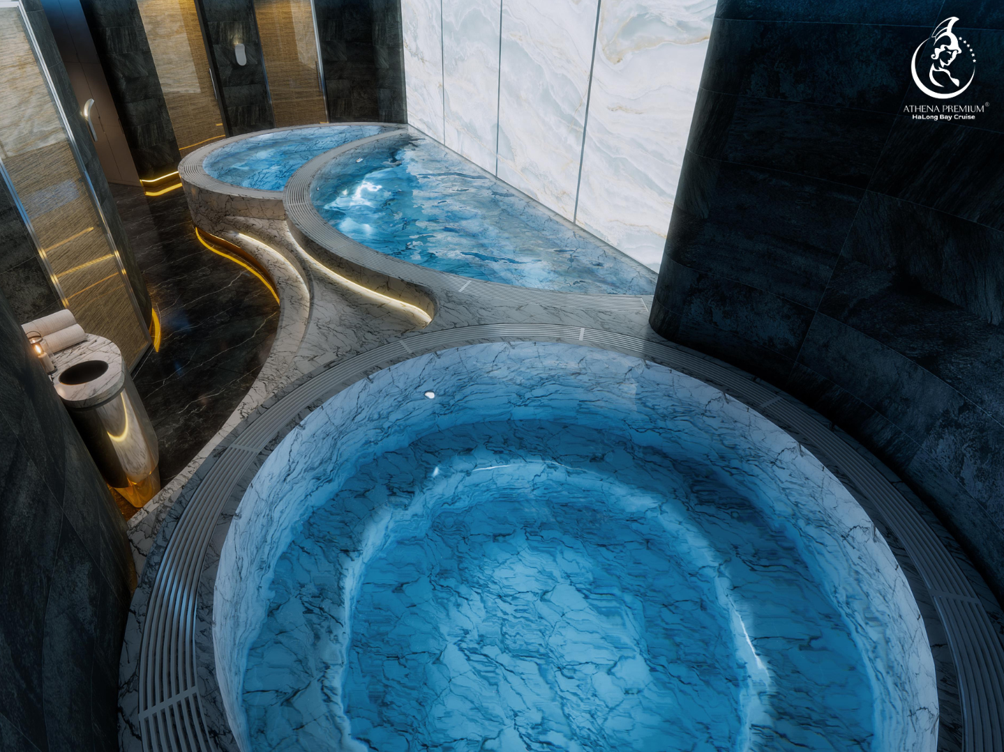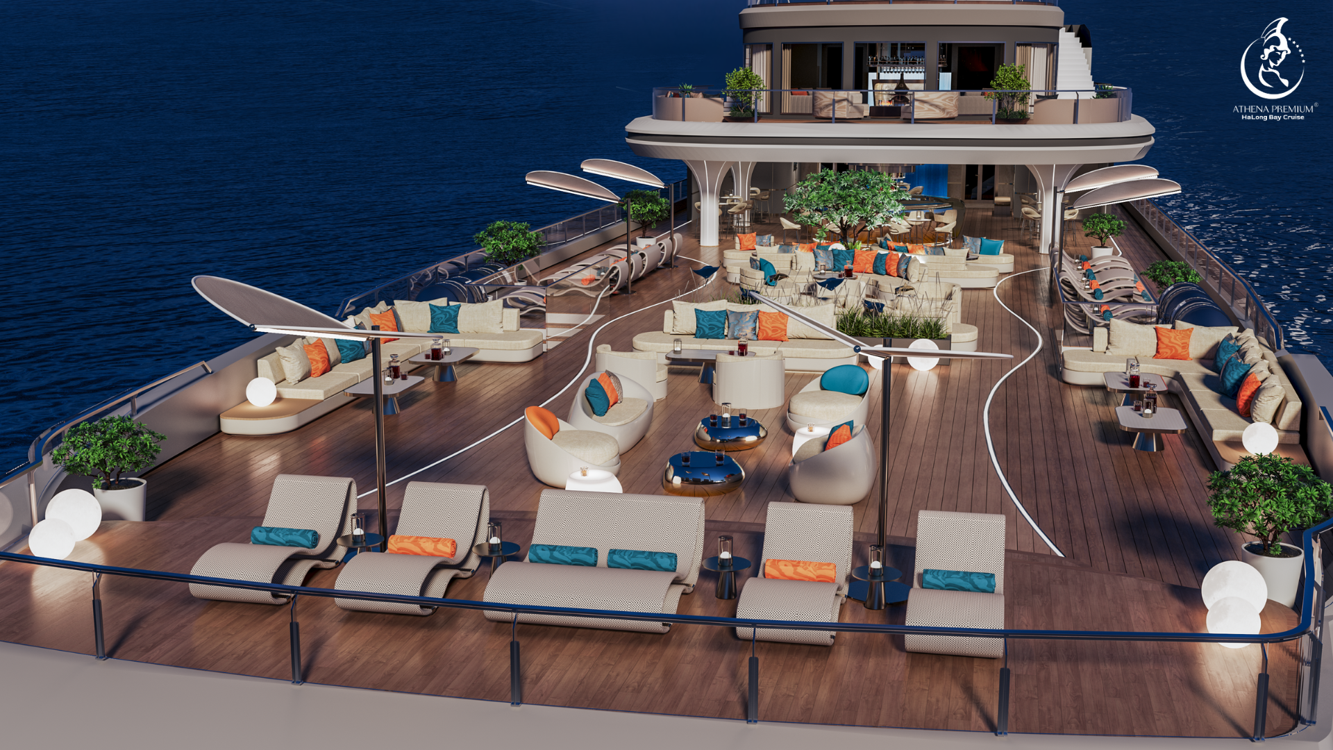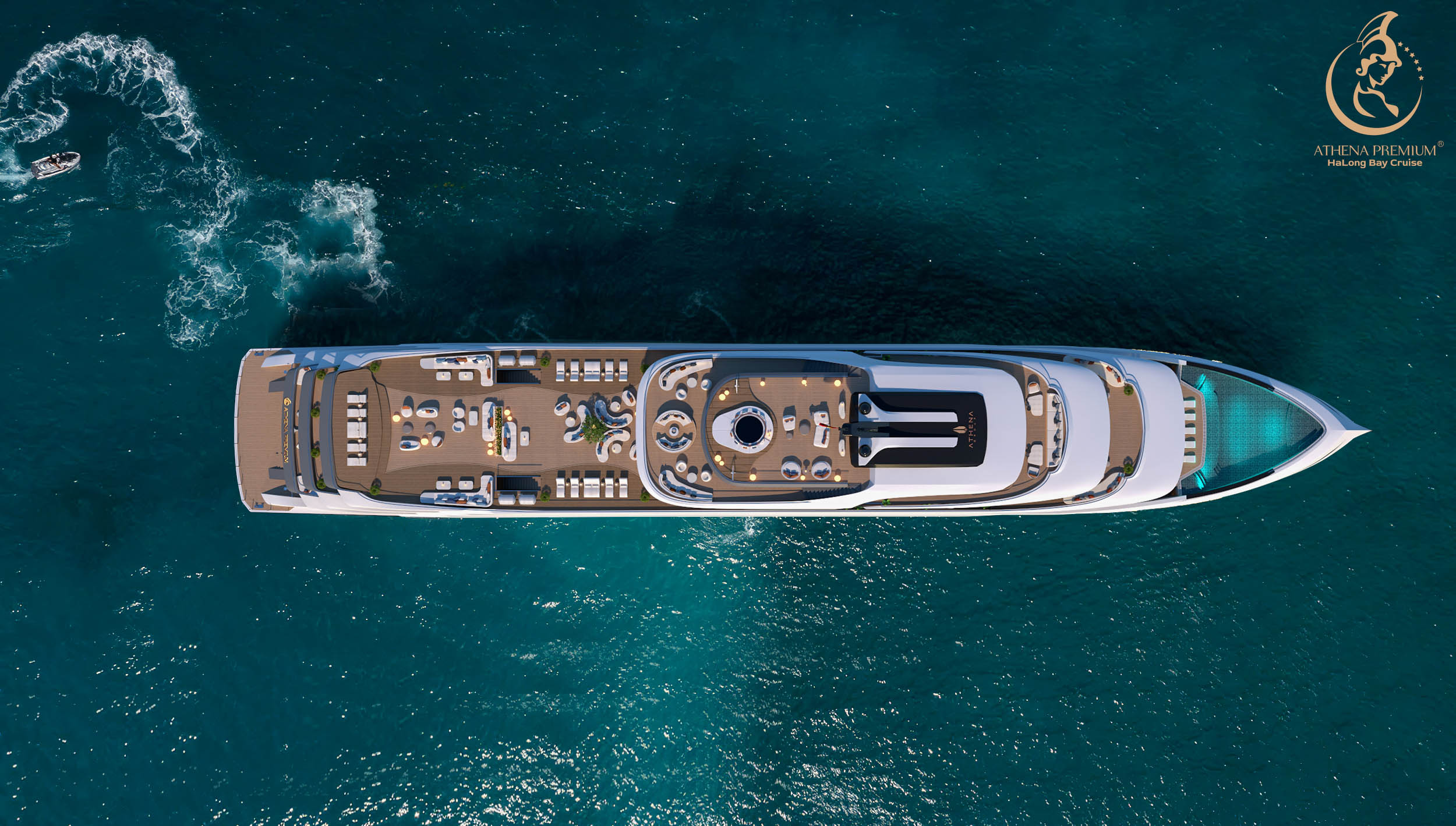 하롱베이 6성급 아테나 프리미엄 크루즈는 전 객실 오션뷰와 세련된 디자인을 갖춘 초호화 웰니스 크루즈입니다.