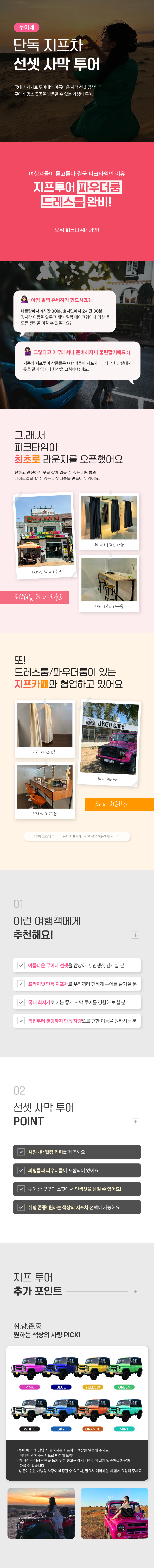 또한, 사막 ATV와 용과 농장 등 유료 체험에 대해서는 선택사항이나, 필수 이용 코스 처럼 느껴지셨다면 해당 부분에 대해 사과의 말씀드립니다.